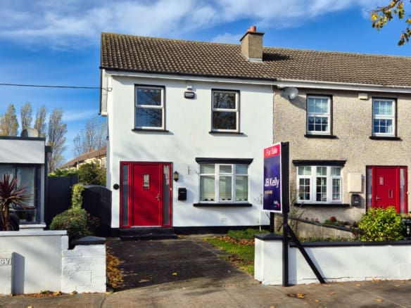 Spacious lounge with vaulted ceiling and built-in storage presses. Double doors to outdoor terrace with views towards the Rectory gardens and Baldoyle coastline.