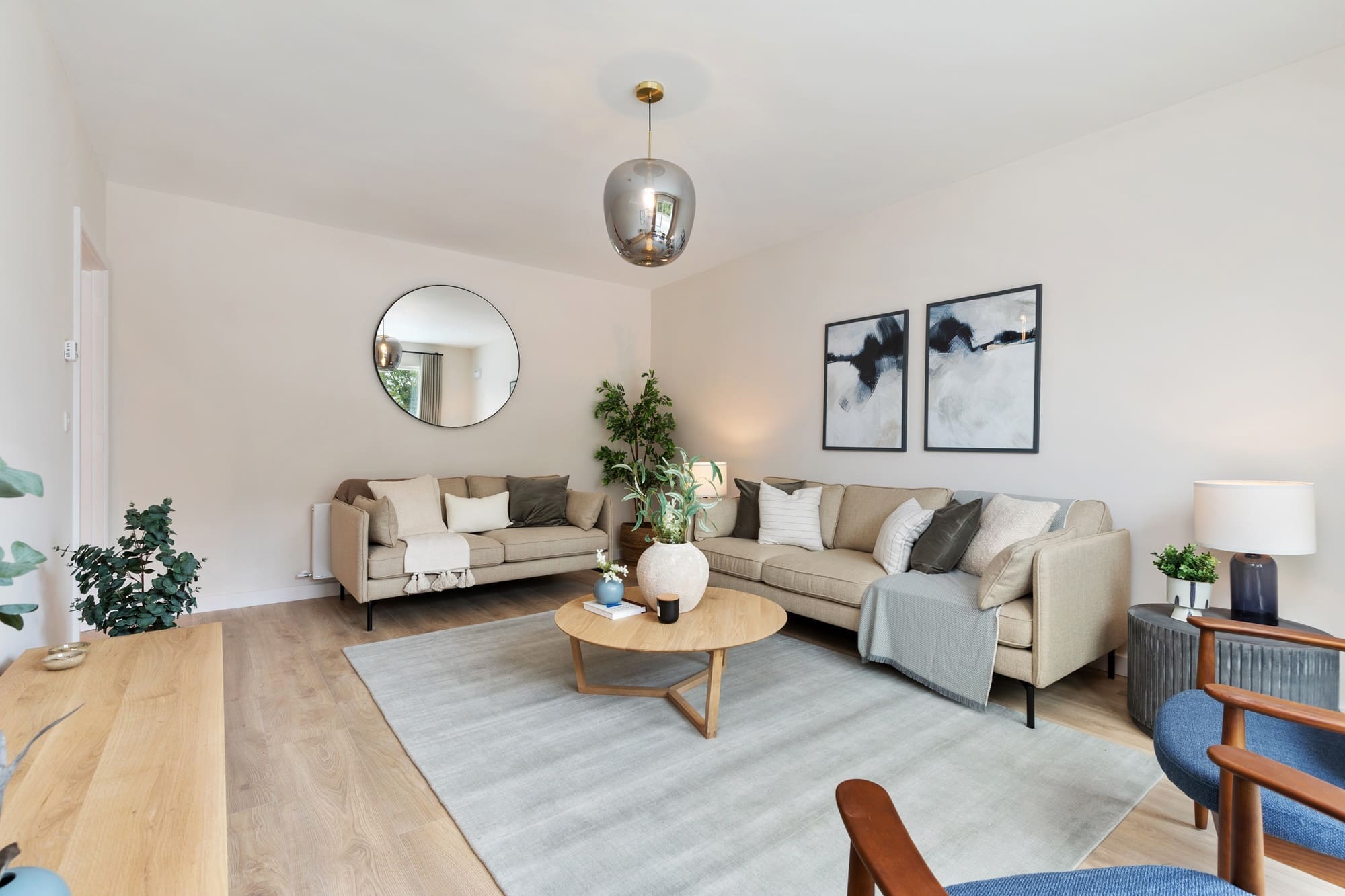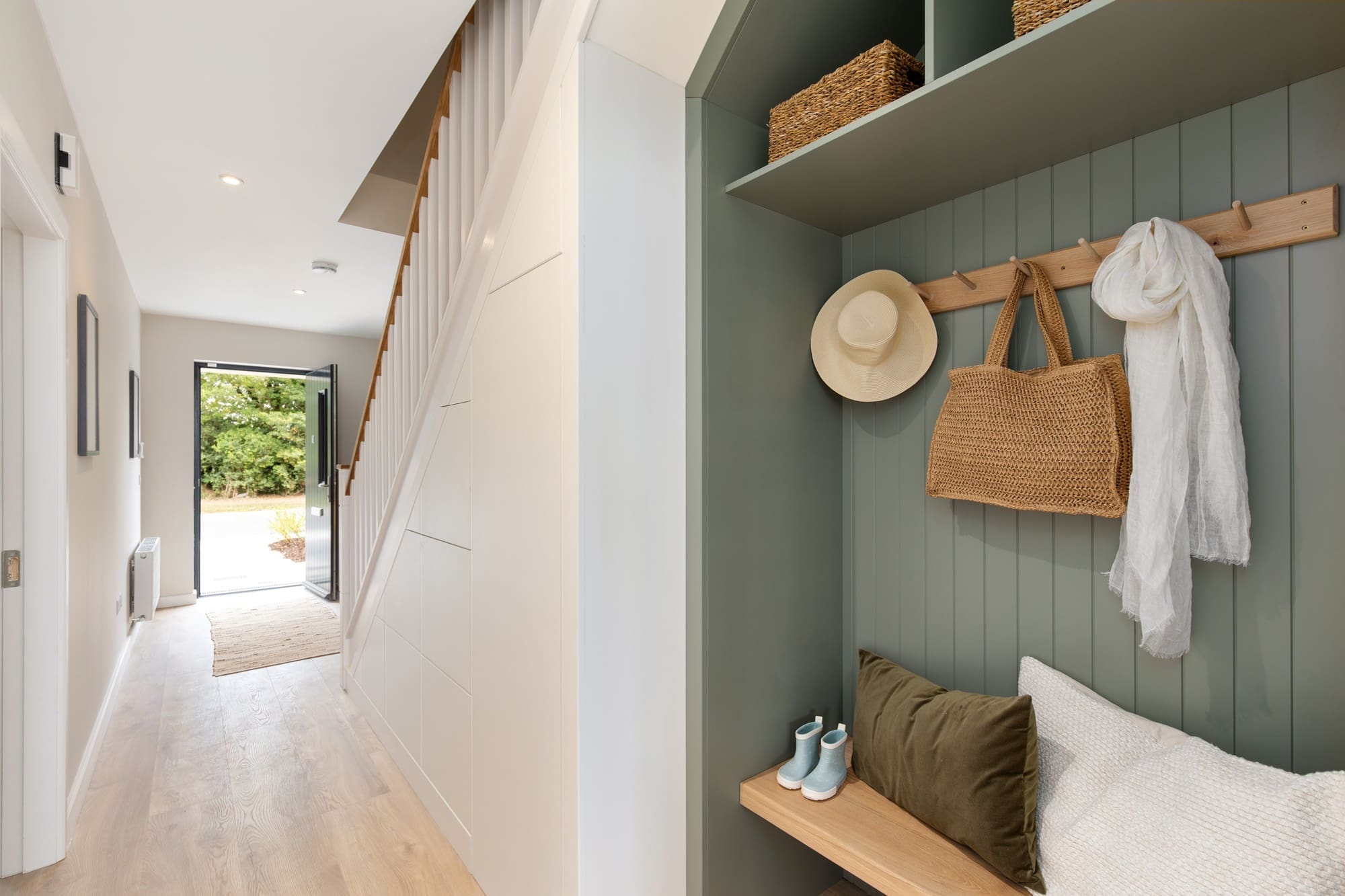 Upon arrival, you are greeted by a beautifully finished cobblelock front driveway with parking for two cars. Stepping inside, the entrance hall features a spacious hallway, modern understairs storage and panelled seating area, along with a guest WC.