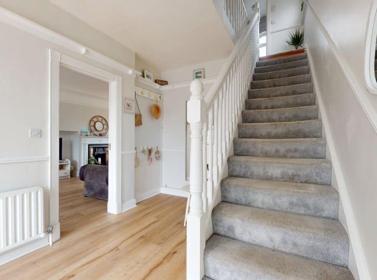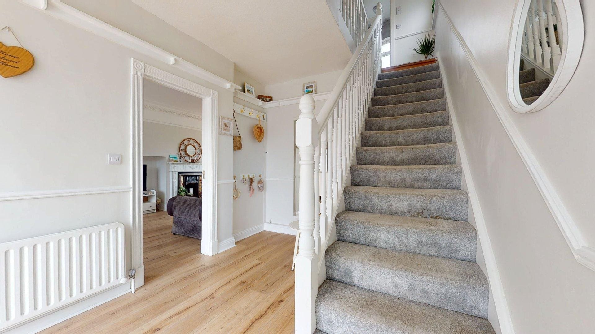Spacious bright hallway with laminate floors
