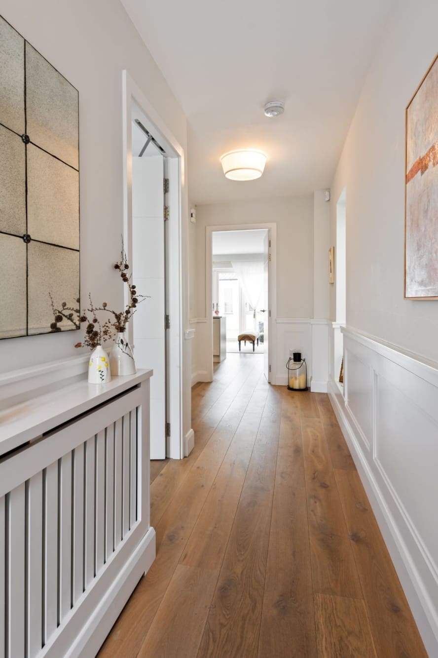 Decorative timber floor, radiator cover, feature panelling, security alarm