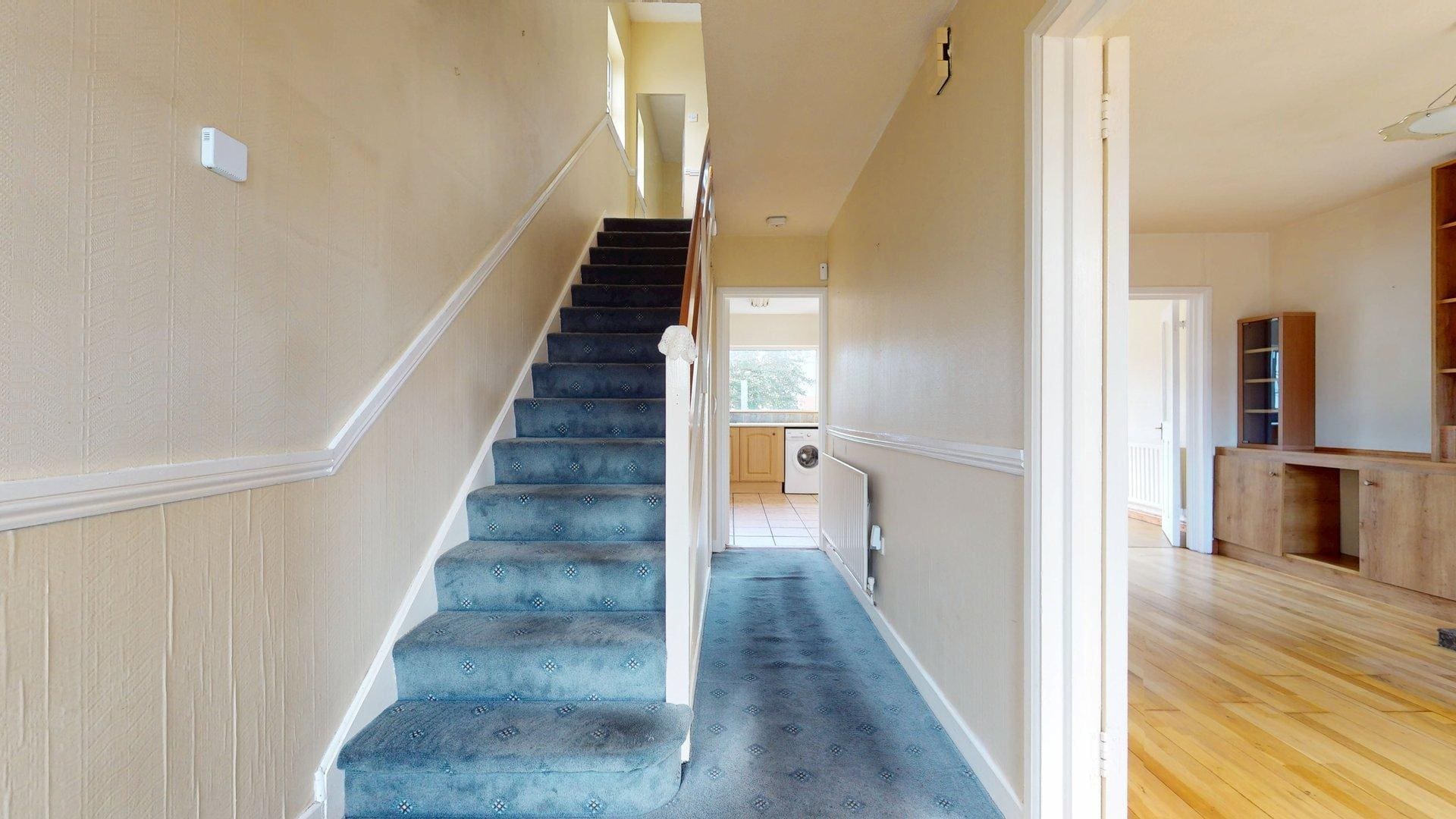 Energy efficient secure PVC front door. Fitted carpet on stairs and hall. Under stairs storage closet.