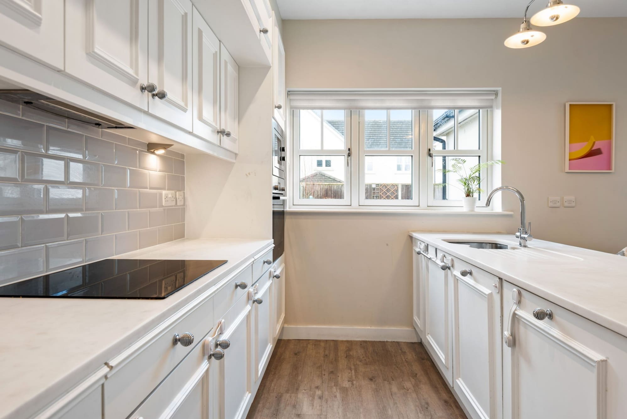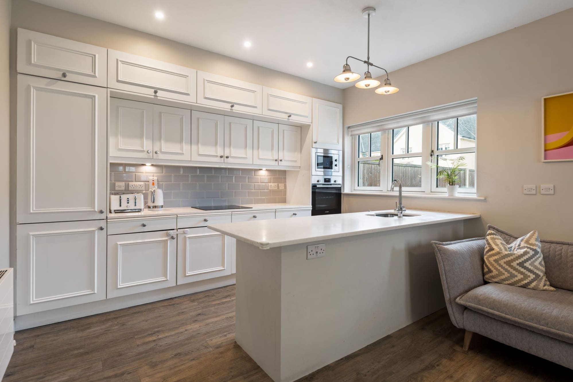Decorative timber floor, fully fitted units, fridge freezer, oven, hob, extractor fan, microwave, dishwasher, under cabinet lights, T.v. point, Eco Water Compact eVolution Smart Water Softener, Reverse Osmosis filtered kitchen tap.
