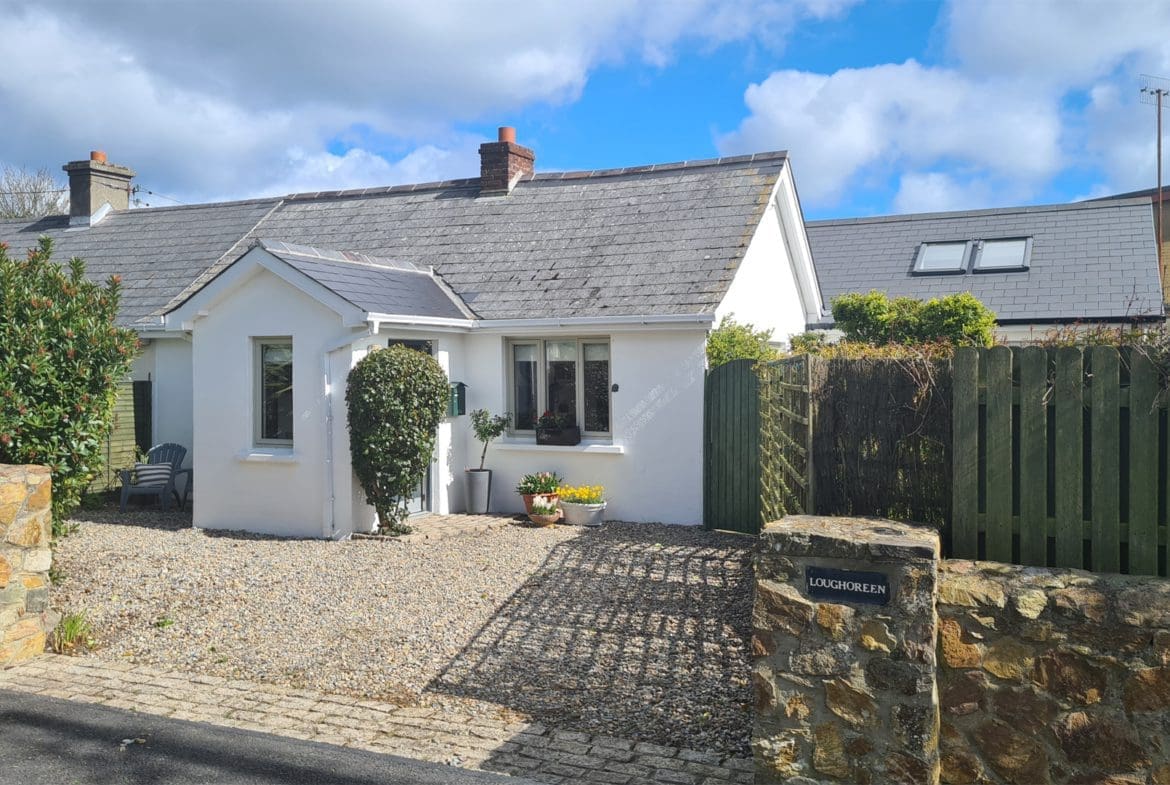 Loughoreen is a stunning three bedroom cottage on the scenic hill of Howth. which in recent years was extensively renovated and extended to produce a surprisingly spacious home. The Porch entrance leads to a charming Living Room featuring a period fireplace, this leads to a Study with solid fuel stove. The heart of this much loved home is the Sun filled Kitchen/dining room, fully fitted and a dramatic living space with vaulted ceilings. The remaining accommodation comprises 3 spacious Bedrooms, a family Bathroom and a guest WC.