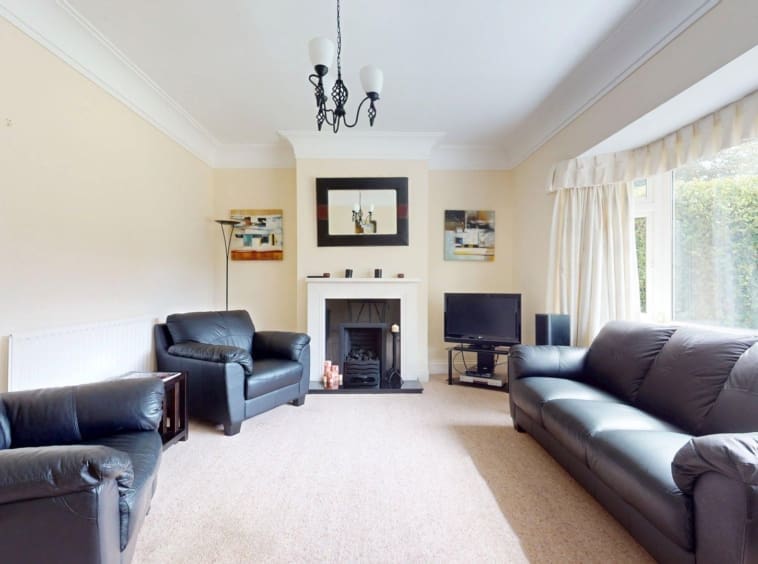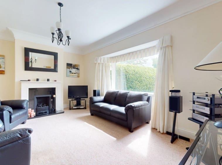 Feature bay window overlooking rear garden. Decorative ceiling coving.