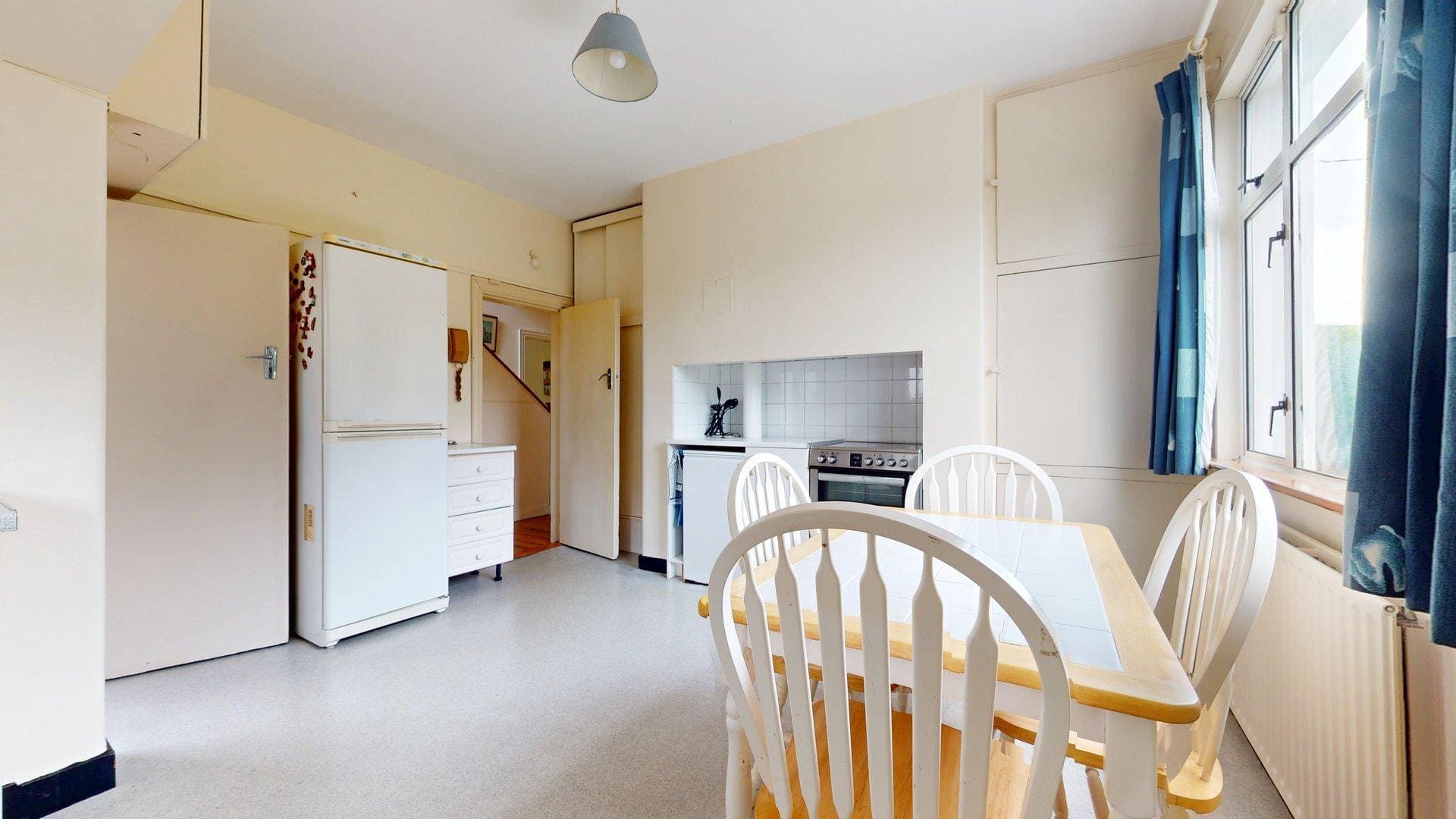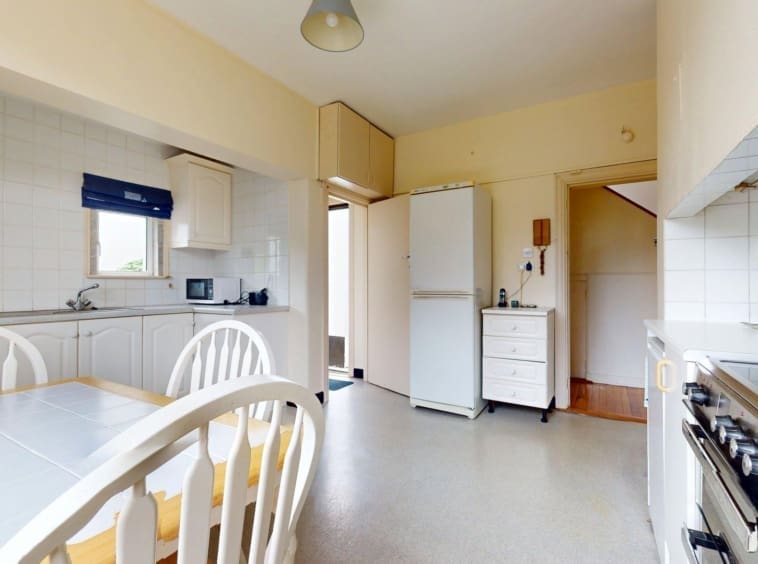 Oven with hob, fridge/freezer, washing machine, dishwasher. Door, via lobby, to rear garden.