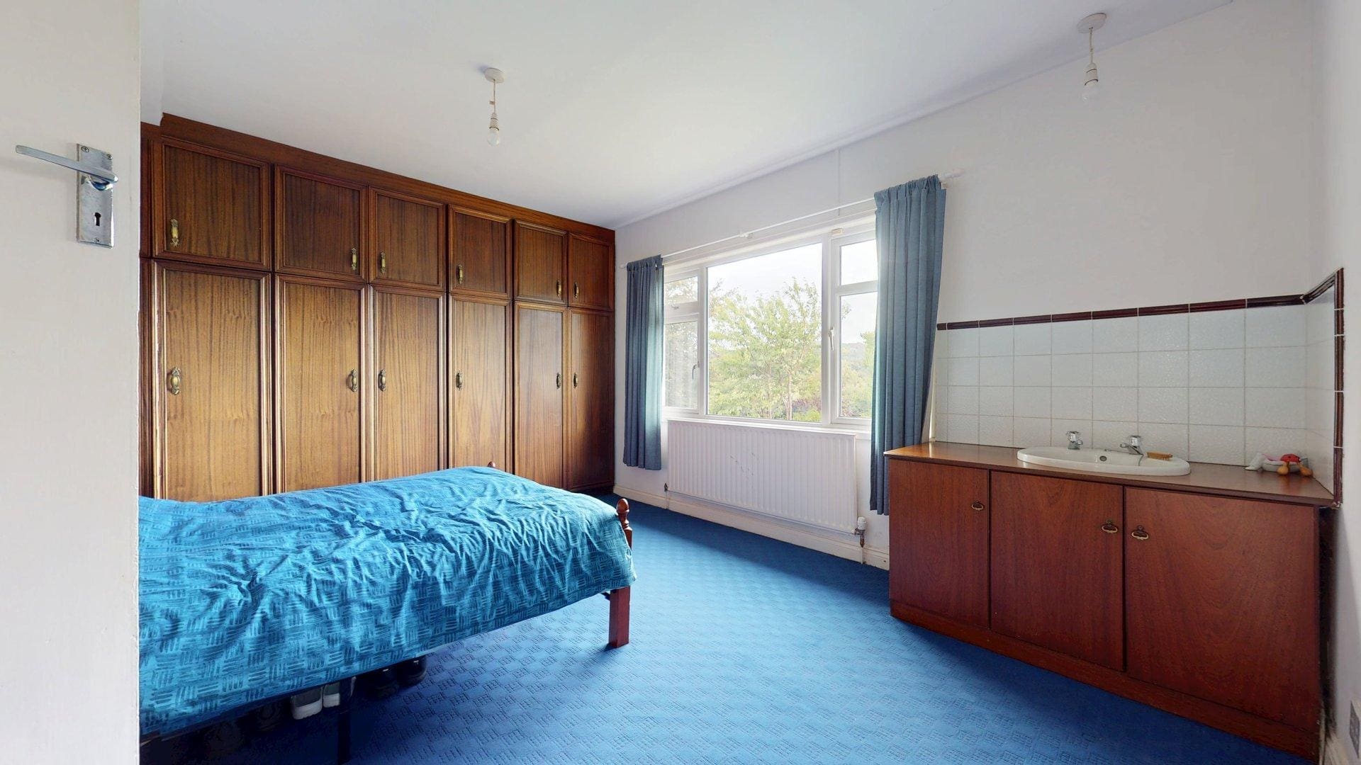 Double sized room overlooking the rear garden. Range of fitted wardrobes.