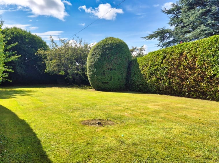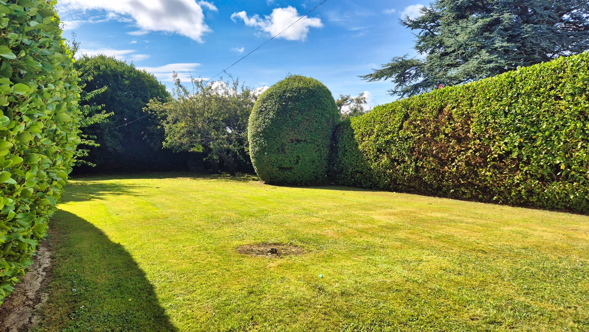 The house is approached by a long front garden with driveway providing off-street parking for several cars. To the rear, the private landscaped garden is bordered by mature hedging and apple trees, with a detached garage, utility shed and boiler house adding useful storage space.